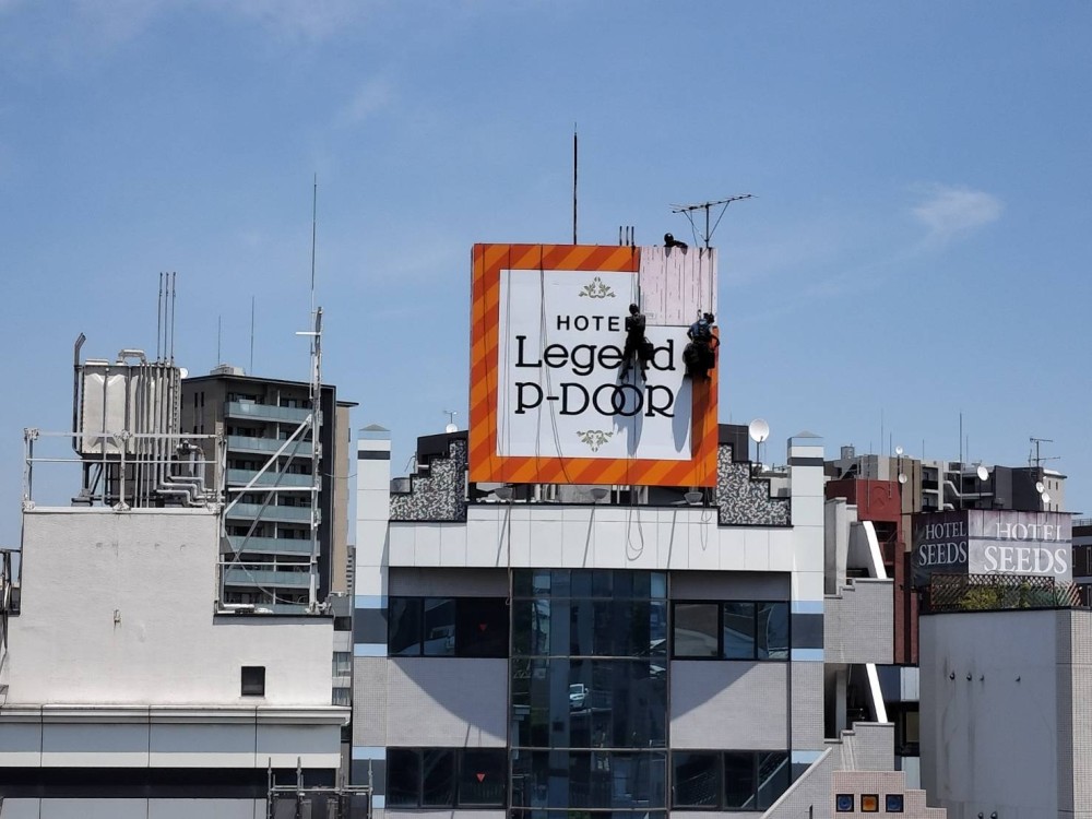 完成も見えてきました。こんな感じで看板として息を吹き返します。是非、高所看板でお困り・ご相談ありましたら、お気軽にお申し付けください。